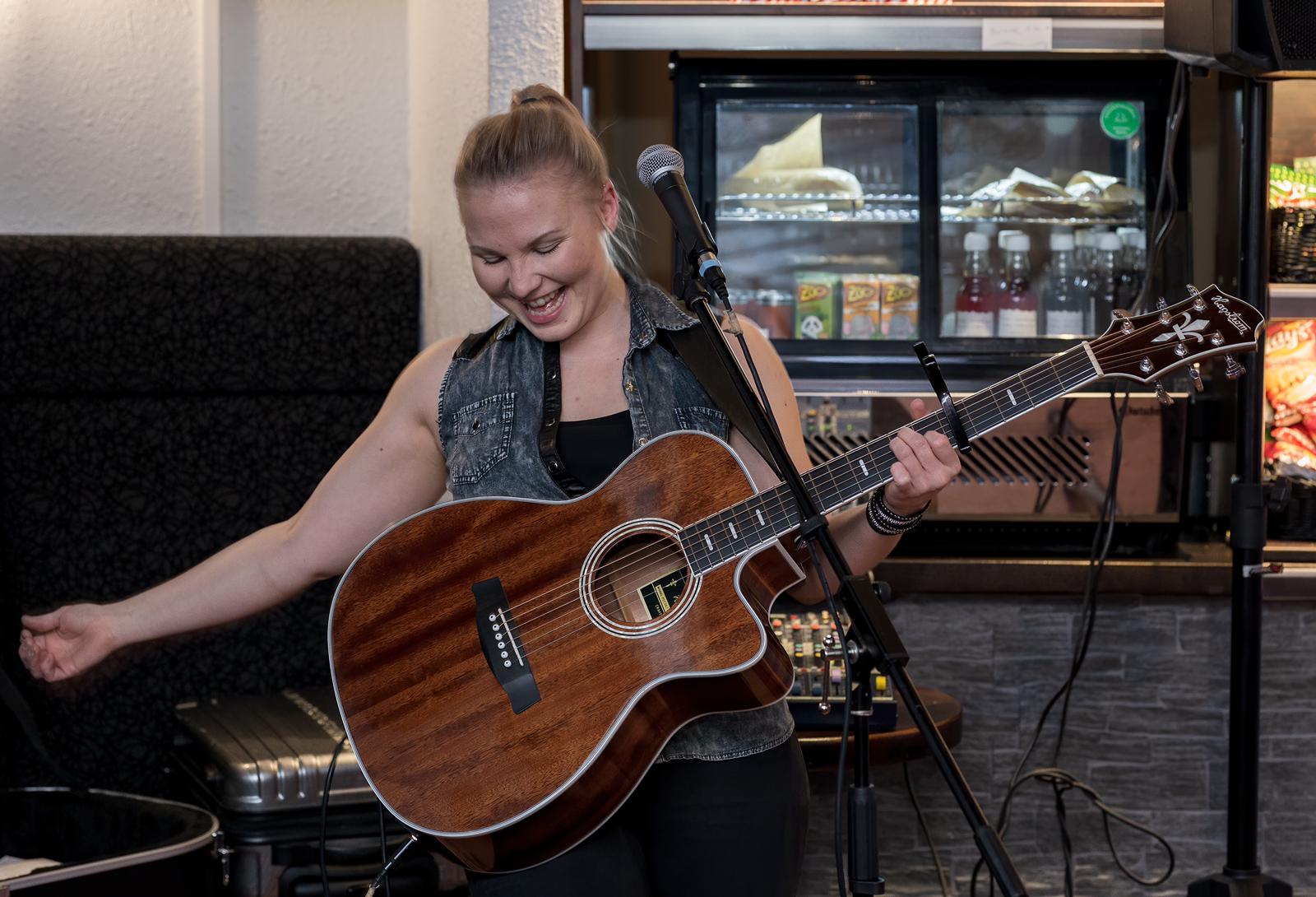 "Pienikokoinen nainen seisoo kitaransa kanssa salin nurkassa. Kun hän aloittaa esiintymisensä, heräävät pöytäseurueet kuuntelemaan. Hänen äänensä kantaa kauas ja hänen energiansa on hyvin tarttuvaa. Mielenkiintoiset sovitukset tunnetuista kappaleista ovat yksi hänen vahvuuksiaan tällä alalla."